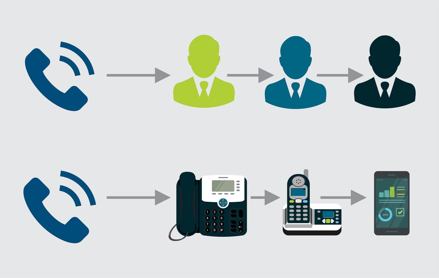 Dengan Penerusan Panggilan, tim Penjualan Anda dapat menjawab panggilan saat berada dalam kemacetan. Tim manajemen Anda dapat meneruskan panggilan mereka sehingga dapat diakses saat dalam perjalanan. Jika cuaca menghalangi tim layanan pelanggan Anda untuk datang ke kantor, mereka dapat menjawab panggilan dari rumah, atau panggilan dapat diteruskan ke personel di lokasi lain.